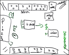 Frente al cuestionamiento vinculado a la forma en que los habitantes de este espacio relegado perciben su propio barrio, se evidencia una clara diferencia en la percepción entre personas con distinto nivel de escolaridad: los entrevistados con mayor nivel de escolaridad imaginan su barrio en una manera completamente diferente a los residentes con escasa formación escolar. Los primeros dibujan su barrio demarcando claramente los límites del encierro y en su interior distinguen algunos centros principales (figura 1).