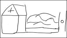 No obstante, aquellos residentes de la segunda zona, al dibujar su propio barrio consideran solo ZEN 2, ya que la primera parte del barrio, ZEN 1, no está considerada dentro de su espacio de acción cotidiana, no es significante. De hecho, todos los entrevistados de la segunda zona, al solicitarles dibujar su propio barrio, comienzan a dibujar la iglesia (figura 6). Esta última cumple la función de frontera desde la cual se extiende su espacio cotidiano.