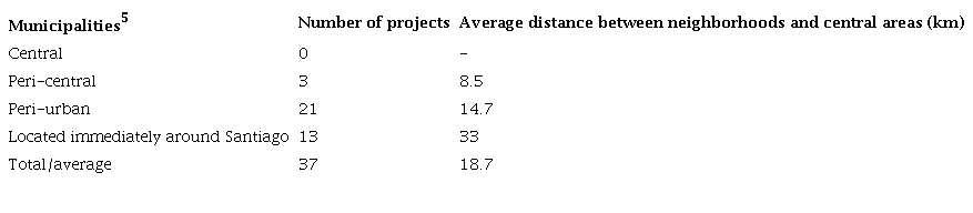Esa franja precaria de oportunidad caracteriza hoy a la política chilena de vivienda de integración social. Mientras profesionales como Astaburuaga y Grandón la van explotando como pirquineros en base a la perseverancia y la inventiva, las autoridades lo han hecho recurriendo al ensayo y error, pero con reajustes recurrentes a los montos de los “subsidios habitacionales”. Por eso, como ilustra la Tabla 2, los conjuntos de vivienda de integración social que se están construyendo hoy en Chile son más bien periféricos y se localizan en áreas de expansión urbana, que generalmente carecen de equipamientos y servicios. El permanente incremento del monto del subsidio no ha logrado asegurar una mejor localización de la vivienda, sino que, más bien, está financiando el incremento del precio del suelo, sobre ganancia que, en medida importante, es capitalizada por los promotores inmobiliarios.