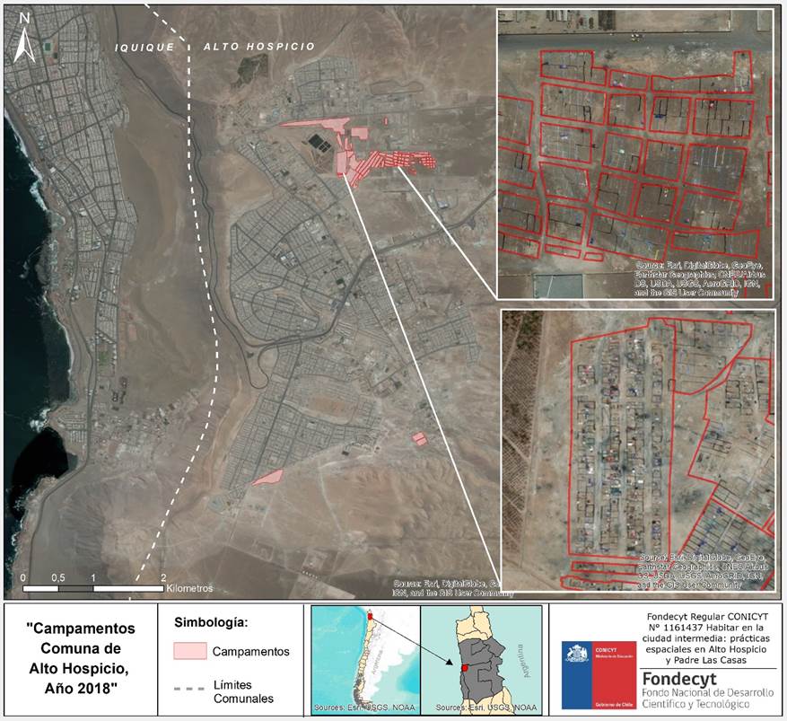 Los campamentos han jugado un rol relevante en la conformación de Alto Hospicio desde su origen como ciudad a mediados de los años 80s. La ciudad ha experimentado una transformación acelerada: pasó en un par de décadas de menos de un millar a cerca de 110 mil habitantes (Instituto Nacional de Estadísticas de Chile [INE], 2018). La construcción subsidiada y masiva de vivienda ha sido el principal motor de crecimiento urbano; no obstante, esto no ha significado el fin de los campamentos. A la vez que se propone la formalización de campamentos, nuevos habitantes ocupan a veces los mismos terrenos o surgen nuevos campamentos. El asentamiento informal se ha consolidado a través de los años como una estrategia de acceso a la vivienda en Alto Hospicio.