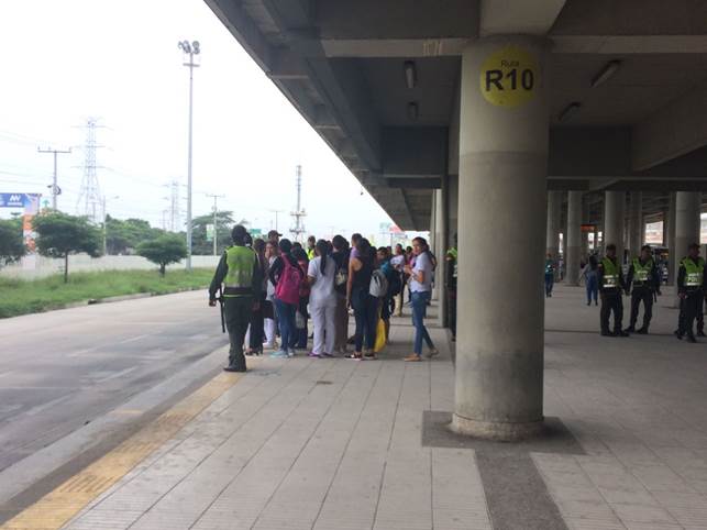 Esas observaciones permitieron identificar que mientras los hombres frecuentan los medios de transporte en las horas conocidas como pico (que marcan el inicio y fin de la jornada laboral regular), el uso de las mujeres permanece constante e incluso presenta otros horarios de agitación: siempre anteriores a las horas pico tradicionales. La figura 1, capturada durante las observaciones exploratorias, muestra esta feminización de los horarios.