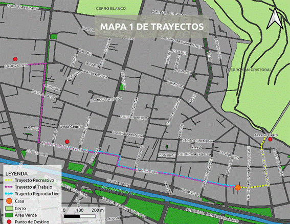 Keywords: daily mobility, feminist urbanism, urban walking, La Chimba (Santiago, Chile)..