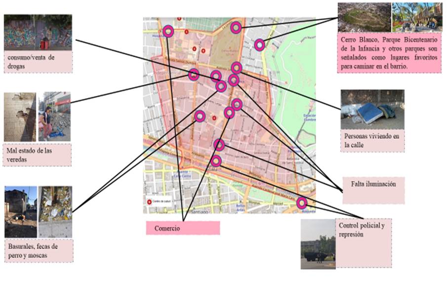 Refieren que eso se debe a varios factores (Figura 4). Primero, por la falta de iluminación. Mencionan en particular tres lugares: el sector de Dominica con Recoleta; la iglesia de la Recoleta Franciscana y cerca del supermercado ubicado en avenida Recoleta N°806.