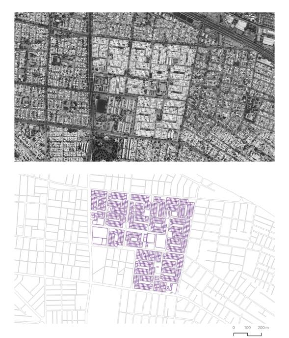 Abstract: Public space is commonly concerned from its social and political dimension, without clear distinctions between space and the public sphere. In addition, debates about the public came from ideas that emerged in the global north. The present document argue that it is necessary to restore the spatial condition of the public as well as its formal dimension to discuss why and whom the public is built in the south. An analysis of the elements of the typological urban form of emblematic towns in Santiago de Chile as a represented space, also known as 9x18 neighborhoods, is proposed. Four design hypotheses about neighborhoods are discussed, based on their land distribution, the hierarchies of their space, the bonds between neighbors and their relations with government services. It is concluded that the public space of the Chilean “poblaciones” built in the 1960s was intended by urban policy as a space that related the inhabitants with the State services.
