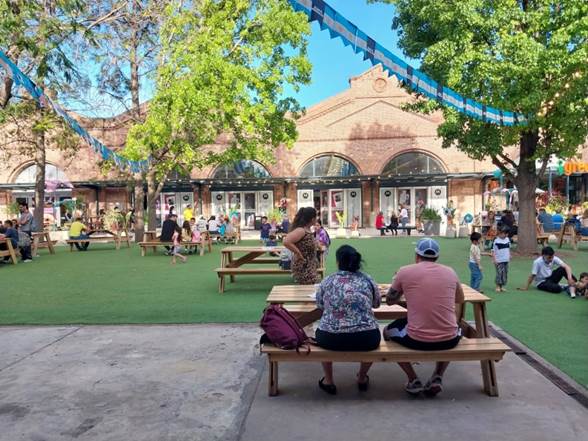 Los reparos frente a los centros comerciales fueron escasos en Rosario. Quizá esto obedeciera a su tardía inauguración respecto a los de Buenos Aires, que fueron enjuiciados por la crítica urbana (Silvestri y Gorelik, 1991) y cultural (Sarlo, 1994). Por el contrario, Rosario recibió con entusiasmo su apertura debido a que prometían la recuperación del mercado laboral y de consumo tras la crisis de 2001. El Alto Rosario contemplaba una rehabilitación patrimonial de los talleres del ferrocarril y una compensación pública con la construcción de las nuevas instalaciones para el Ministerio de Educación de la Provincia de Santa Fe. Uno de los puntos controversiales del proyecto fue la participación en el diseño del arquitecto de mayor trayectoria e involucramiento con la gestión municipal en el área del planeamiento urbano desde la recuperación democrática de 1983. Esta polivalencia y transferencia de actores técnicos, operativos en el campo público-político y en el campo privado-empresarial, fue problematizada por Feld (2021). La obra muestra una recuperación del patrimonio ferroviario y una visible influencia de la arquitectura pública, signada por el Parque de España. En este sentido, el Alto difiere del Portal Rosario, cuyo proyecto desarrollado por la empresa chilena Cencosud se encuentra poco conectado histórica y morfológicamente a su contexto urbano. Además del desarrollo de una arquitectura patrimonial ferroviaria, el Alto Rosario cuenta con espacios al aire libre que estimulan intercambios y encuentros que, si bien parten del consumo, también, pueden trascenderlo.