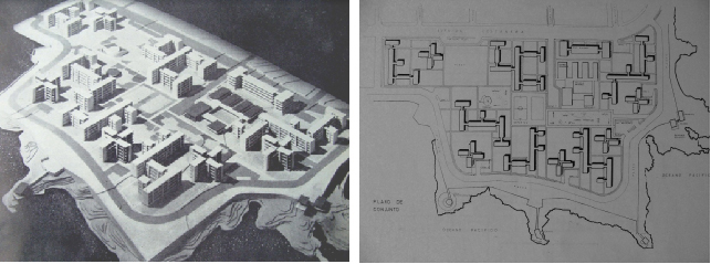 En enero de 1966, y nuevamente a través de la prensa se informaba que la CORVI consideraba un amplio plan habitacional para Iquique (“Un amplio plan de acción”, 1966), el que se consolidaría finalmente con la ejecución del proyecto de remodelación habitacional para la península El Morro, junto a la construcción de otras poblaciones en distintas áreas de la ciudad. Sin embargo, el anuncio de este plan se tradujo en un nueva propuesta urbana y arquitectónica, que cambió radicalmente los conceptos morfológicos y tipológicos de los proyectos anteriormente mencionados y que se exponían en el proyecto de Remodelación “El Morro”, Iquique (Figura 3).