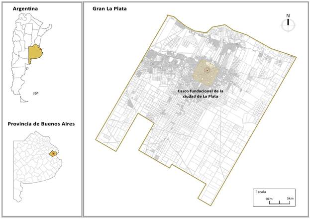 La ciudad de La Plata (Figura 1) forma parte del Gran La Plata, configurado por los partidos de La Plata, Berisso y Ensenada, ubicados al sur de la Región Metropolitana de Buenos Aires. Hacia el año 2020, contaba con una población estimada de 713.947 habitantes (Instituto Nacional de Estadística y Censos, 2010), que se caracterizaba por pertenecer preponderantemente al sector terciario, y configuraba la estructura socioeconómica a partir de sus funciones administrativas como capital provincial y ciudad universitaria, sede de la Universidad Nacional de La Plata (UNLP), una de las universidades más importantes del país.