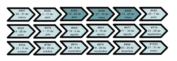 La irrupción de la pandemia por COVID-19 en Argentina tuvo un devenir particular en relación a las normativas adoptadas por las autoridades gubernamentales al conocerse los primeros casos de la transmisión de la enfermedad, con medidas preventivas drásticas de aislamiento social, dictadas por decreto a nivel nacional e implementadas de modo federal. El 20 de marzo de 2020 se dispuso a nivel nacional el aislamiento social, preventivo y obligatorio (ASPO), permitiendo solo el desarrollo de actividades consideradas esenciales: salud, seguridad, alimentación y comercios barriales de diferente índole a partir del Decreto N.º 297 (2020). Conforme pasó el tiempo, las condiciones de este aislamiento se fueron modificando, tal como indica la siguiente línea de tiempo (Figura 2), donde destacamos el periodo de abril, mayo y junio de 2020, como los momentos en que se implementaron las medidas de aislamiento y distanciamiento social en el marco del denominado “Plan estratégico de respuesta integrada al COVID-19” (23 de diciembre de 2020). Allí se demarcan las medidas adoptadas para la gestión de la pandemia, desarrollando una primera etapa, en la cual el Decreto N.º 297 (2020) y el Decreto N.º 325 (2020), marcan el momento de aislamiento administrado, mientras que a partir del tercer Decreto N.º 355 (2020), comienza el momento de segmentación geográfica (o fase 3) a partir del cual el aislamiento estricto empezó a flexibilizarse de distintos modos, desde salidas recreativas a 500 metros del domicilio hasta la construcción de protocolos para actividades económicas.