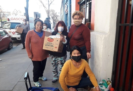 Durante el inicio de la pandemia se expresaban sentimientos de preocupación e inseguridad, que motivaban la mantención de una comunicación y monitoreo permanente. Sus prácticas de cuidado no sólo apuntaban a la búsqueda de soluciones y recursos materiales, sino también a dinámicas menos tangibles basadas en acompañamiento y muestras de apoyo. Los lazos sostenidos descansaban (y a su vez generaban) recursos materiales y socioafectivos (Kathiravelu y Bunnell, 2018). Situaciones tanto vividas como percibidas en otros, conllevaban diversas emociones -tales como, sentimientos vulnerabilidad y compasión- que mediaban acciones particulares. Francisca relataba como durante la pandemia “algunos quedaron sin trabajo, otros quedaron sin vivienda, pero ahí nos apoyamos… alguna una enfermedad o algo, todas colaboran y apoyan”. Mientras algunas actividades, como las prácticas deportivas en una escuela local, se suspendían, se desarrollaban nuevas iniciativas en otros espacios de cuidado. Por ejemplo, con el dinero recolectado a través de las cuotas mensuales, las socias compraron víveres y armaron cajas con alimentos, que repartieron recorriendo las calles del Gran Yungay (Figura 1). Así, la pandemia no conllevó la cancelación de sus cuidados, sino que promovió una reinvención y una articulación socioespacial con el entorno vecinal más amplio, incluyendo a personas chilenas como receptoras de cuidados.