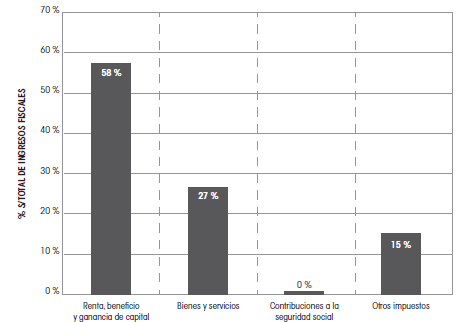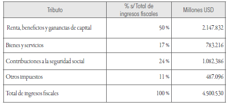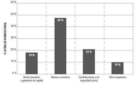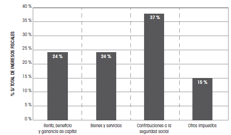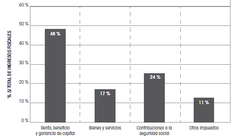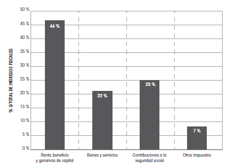 Así pues, la incidencia de la economía informal determina que el impuesto a la renta en Latinoamérica siga estando concentrado en las personas jurídicas (CEPAL, 2010). La recaudación en América Latina procede en un 70 % de rentas de sociedades, en comparación con la OCDE donde el 70 % de la recaudación procede de la renta de los individuos (CEPAL, 2010). En cambio, el impuesto a la renta personal está muy lejos de los países miembros de la OCDE y proviene en su mayor parte de los trabajadores asalariados, con menos margen de evasión y elusión que los trabajadores independientes. Los países latinoamericanos obtienen un promedio de solo 1,5 del PBI, en comparación con las economías de la OCDE en donde el valor supera los 9 puntos del producto. En términos de estructura tributaria, en América Latina y el Caribe el grueso de la carga recae en impuestos al consumo y otros indirectos. En cambio, los impuestos directos apenas suponen un tercio de la recaudación total; la evasión del impuesto a la renta es del 51 %. Evidentemente, se ha dejado de lado el impuesto a la renta y se ha fortalecido técnica y administrativamente el impuesto al valor agregado (IVA).37