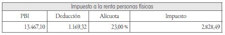 A continuación, se realiza un ensayo de simulación sobre la incidencia de un impuesto directo, renta de persona física y un impuesto indirecto a los consumos. Se trabaja sobre el PBI de los países objeto de estudio y el PBI per cápita. Se toma como base la información del año 2015, que es la última publicada por la OCDE para todas las variables, IVA, ganancias personas físicas, PBI per cápita. El simulador se ha elaborado en base a las alícuotas generales del IVA, alícuota media de ganancias personas físicas, PBI per cápita, participación del consumo sobre el PBI per cápita, presión fiscal, mínimo no imponible (Nontaxable minimum, que corresponde a la parte de la base fiscal que la ley libera del gravamen y constituye el límite, superado el cual se comienza a tributar).