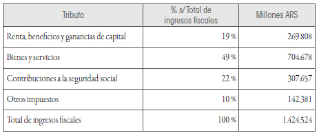 Inmediatamente después del estallido de la crisis de 1890 y junto con un fallido intento de refinanciación de las obligaciones de la deuda externa, Carlos Pellegrini llevó a cabo algunas reformas fundamentales en el sistema tributario. Estas reformas apuntaban a lograr un nivel de ingresos fiscales compatible con las erogaciones comprometidas para el pago de las obligaciones. Una de las principales medidas fue la institución de la imposición interna, con características objetivas (CEFID-AR, 2005). Entre 1898 y 1904 las exportaciones se triplicaron y con ellas los recursos del Estado, y los ingresos aduaneros continuaron siendo los más relevantes. Como consecuencia del cierre de los mercados de ultramar durante el inicio de la Primera Guerra Mundial, la recaudación aduanera disminuyó y la Argentina sufrió una caída del 11,6 % del producto bruto. Recién hacia fines de 1915 se abandonó la política de intervención estatal adoptada al inicio de la Primera Guerra Mundial y se retomó el sistema de políticas liberales, con lo que comenzó un nuevo ciclo económico ascendente. La crisis internacional de 1929 produjo un impacto en gran escala y el comercio mundial se redujo en dos tercios. Los recursos de aduana, que en 1929 representaban el 59,2 % de la recaudación, se redujeron en 1931 al 38,6 %. Con la crisis del año 30 retornaron las políticas de planificación e intervención estatal, y el sistema impositivo no fue ajeno al proceso de reformas. La contracción del comercio internacional y la reducción de la renta aduanera obligaron al Gobierno a recurrir a otras fuentes de ingreso para financiar el creciente gasto público y sostener, también, el pago de los servicios de la deuda externa. En 1931 se creó el impuesto a las transacciones, antecedente del actual IVA, y en enero de 1932 se adoptó el impuesto sobre la renta neta total de los contribuyentes, antecedente del impuesto a las ganancias. Entre 1930 y 1940, impulsado en parte por la coyuntura propia de la gran depresión, puede observarse el inicio de una transformación en la composición del origen de los recursos tributarios con un crecimiento relativo de los impuestos directos, entre ellos el impuesto a los réditos, sobre beneficios extraordinarios, a las ganancias eventuales, a la transmisión gratuita de bienes.