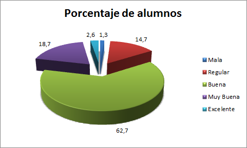 La última pregunta en la encuesta de inserción laboral les pedía que calificaran la preparación recibida en la UAP respecto de las necesidades cognitivas y prácticas que tuvieron al momento de hacer frente a una responsabilidad laboral. La escala fue desde “mala” a “excelente”. El resultado se encuentra representado en la figura 2.2.