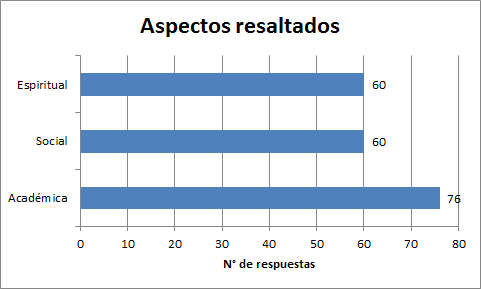 Al analizar este cuadro recibimos una excelente respuesta que nos confirma el buen camino transitado en este sentido, ya que los encuestados reconocieron la formación integral como algo para destacar.