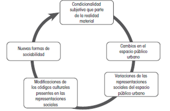 Proceso cíclico de relación entre condicionantes subjetivas y objetivas relacionadas con la representación social del espacio público urbano
