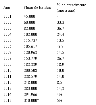 Observa-se que nos dois últimos anos há uma estagnação das taxas de crescimento, embora a atividade turística transforma-se numa das principais atividades para economia local, no sentido de geração de empregos e criação de riqueza. Existe um movimento de desenvolvimento de esforços para aumentar a época turística seja na renovação de equipamentos ou na proposta de novos eventos em outras épocas do ano.