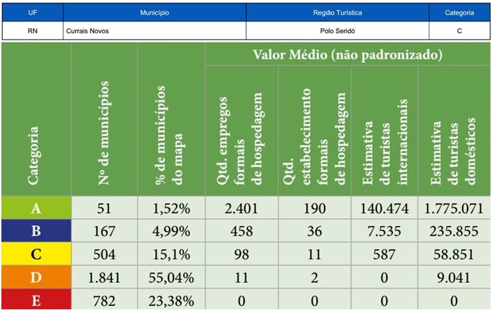 De acordo com o novo Mapa do turismo brasileiro, edição 2016, Currais Novos se encontra na categoria C, caracterizando-se como destinopredominantemente doméstico. Segundo as estimativas, turistas internacionais representam em média 1% do total de visitantes (Figura 4).