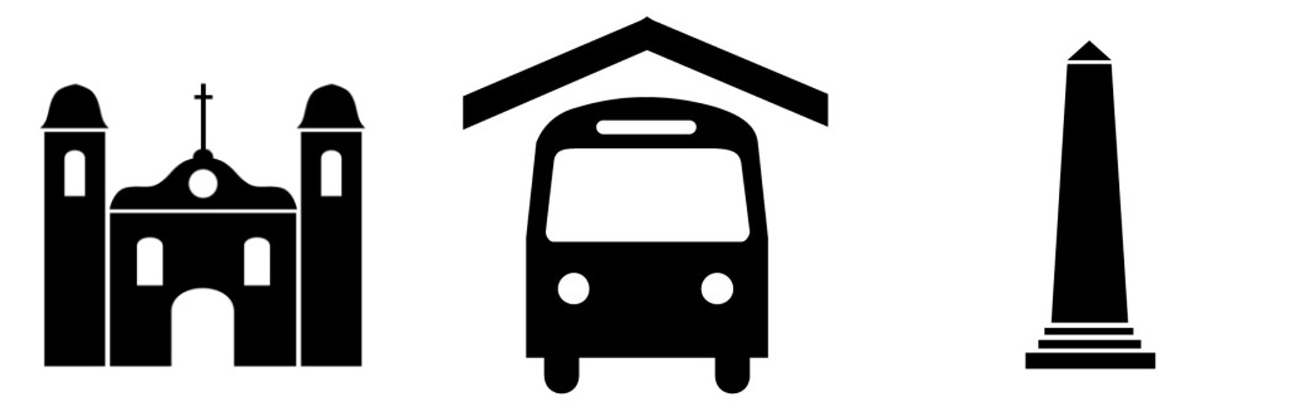 De acordo com o Guia Brasileiro de Sinalização Turística (EMBRATUR; IPHAN; DENATRAN, 2001) pictogramas correspondem às “ilustrações que sintetizam os tipos de atrativo turístico e de serviço auxiliar, cujo uso é recomendado para facilitar a identificação do destino, complementando a função do topônimo e melhorando o esquema de comunicação com o usuário”, conforme mostra a figura 1.