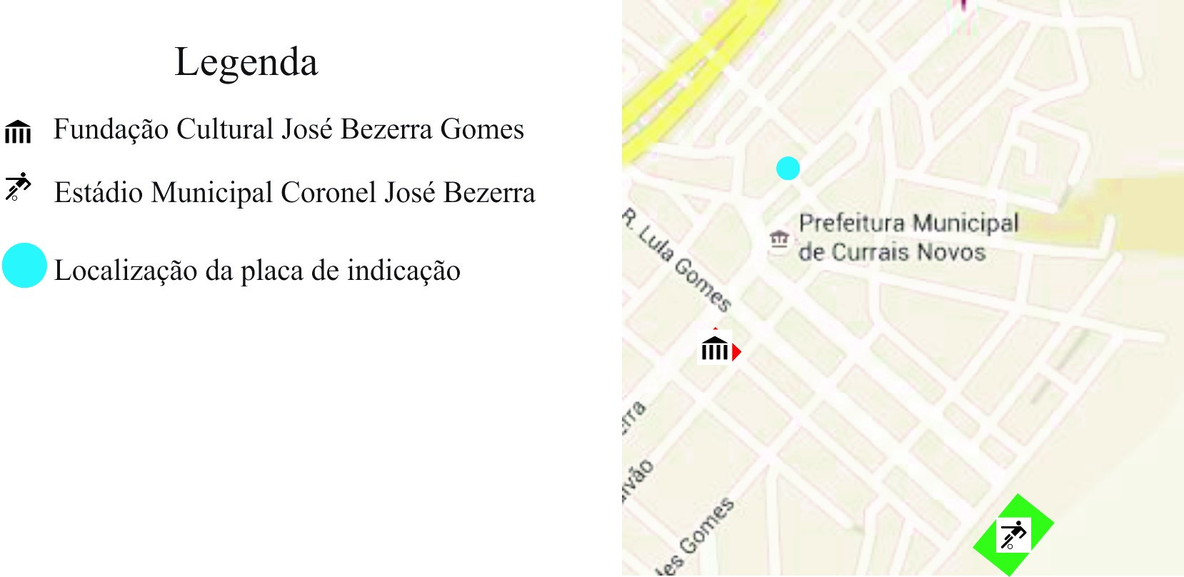 Foram estabelecidos um total de sete placas dispostas ao longo do percurso que leva aos 15 pontos de interesse do turista (Figura 7), contemplando um total de 6 bairros de Currais Novos. O trajeto foi elaborado para o turista que chega à cidade pela BR 226, no sentido Natal/interior, conforme figuras 8, 9 e 10.