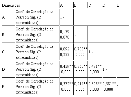 Na tabela 04 é apresentada a matriz de correlação das variáveis latentes obtidas no estudo: