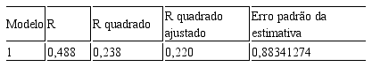 Observa-se que, pelo procedimento estatístico utilizado, no modelo final de regressão, somente a variável independente “Importância do Objetivo” não apresentou relação significativa com a variável dependente “Encantamento” (valor de probabilidade de erro de 0,174). Tal fato pode ser consequência da existência de multicolineariedade entre as variáveis utilizadas no modelo, ou seja, quando duas variáveis independentes forem altamente correlacionadas entre si , o que acontece entre “Importância do Objetivo” e “Interesse do Objetivo”, e ainda forem correlacionadas com a variável dependente, que é o caso, é provável que apenas uma delas entre no modelo, haja visto que quando a primeira delas for incluída, sobrará pouco poder explicativo adicional para a outra.