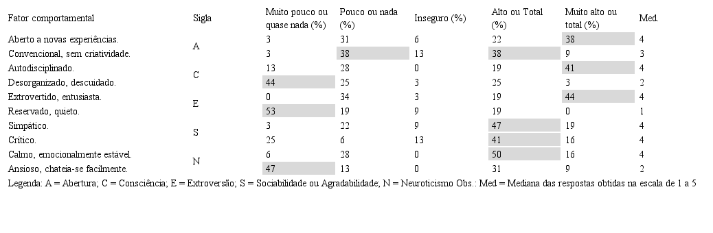 2.2 Fatores comportamentais segundo “Ten Itens Personality Inventory” [TIPI]