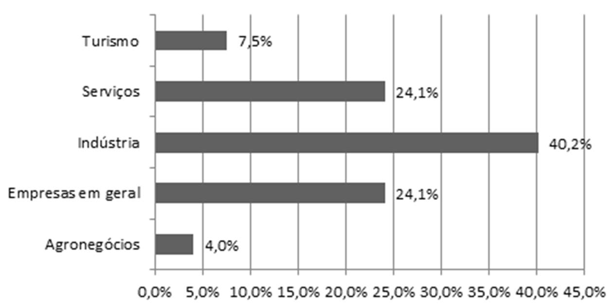 Verificando as duas maiores bases de dados de literatura anônima revisada e disponível em websites de qualidade – SciVerse Scopus e Web of Science (MEHO; YANG, 2007), verificara-se algumas características da pesquisa em coopetição. Para localizar os estudos publicados sobre esta temática, foram realizadas duas buscas nas bases de dados anteriormente citadas, com critérios predefinidos. Primeiro se buscaram artigos em que as palavras “Coopetition ou Co-opetition” estivessem no título, no resumo ou nas palavras-chaves do artigo. Num segundo momento, afunilou-se a busca para se concentrar no setor turístico. Assim, utilizaram-se as palavras “Tourism Coopetition ou Tourism Co-opetition”. O recorte temporal estabelecido foi de trabalhos publicados entre 1996 a 2015, ambos inclusive. Alguns artigos apareciam nas duas bases de dados, assim foram desconsiderados os casos de duplicidade. O resultado final depurado foi de 284 publicações sobre coopetição em diversos setores (Gráfico 1). Destes 284 artigos, 199 são estudos empíricos, sendo a maioria no setor industrial (40,2%). Consideraram-se na categoria ‘empresas em geral’ os trabalhos da área comercial ou que incluíam redes com mais de um setor. O turismo, apesar de estar dentro do setor de serviços, foi computado separadamente para fins de melhor adequação aos objetivos deste trabalho. Assim, este setor apresentou 7,5% dos trabalhos empíricos, ou seja, entre as 199 publicações empíricas, 15 foram no setor turístico. Os demais setores podem ser observados no Gráfico1.