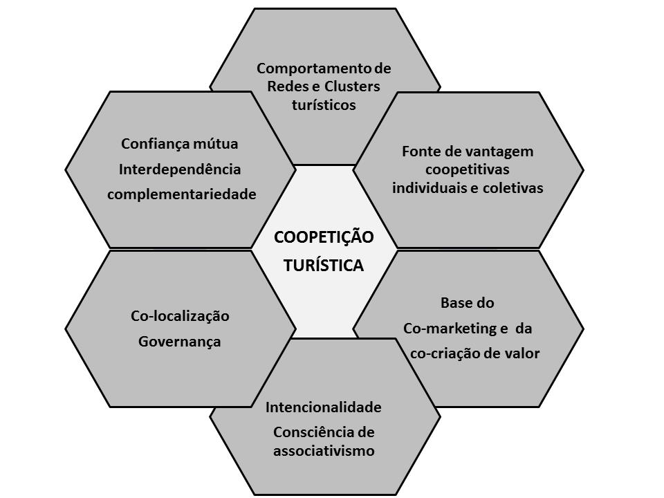 A revisão da literatura sobre coopetição e especificamente coopetição turística permitiu constatar que o destino turístico é um sistema de coopetição, pois suas características geram um contexto que reproduz a formação de redes ou alianças interorganizacionais entre empresas horizontais, verticais e mistas, portanto a relação entre elas é um híbrido entre cooperação e concorrência (Della Corte & Aria, 2016).