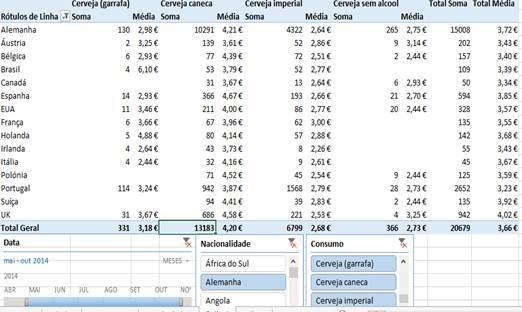 Por último, é de ressalvar que a média mais alta pertence naturalmente à Sangria (9,14 €), ao passo que a Polónia, tendo em conta ambas as figuras, é a detentora da média por consumo mais cara (5,17 €), apesar de ter consumido o artigo Café em maior número.