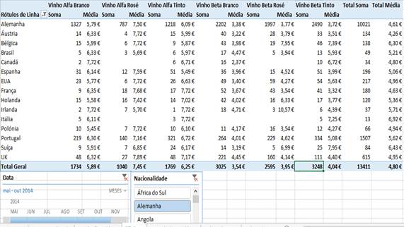 - Pivot ou rotação, que “permite rodar os eixos de visualização dos dados”, possibilitando assim uma análise sob uma diferente perspetiva dos mesmos dados.