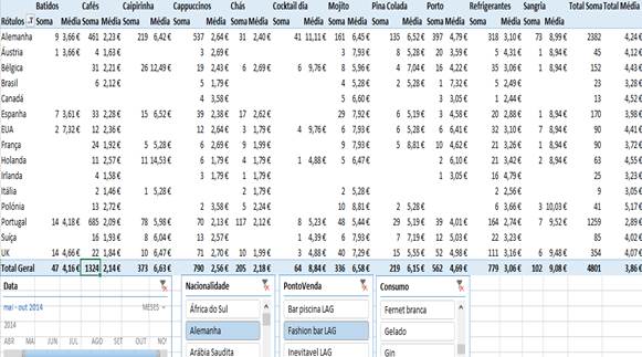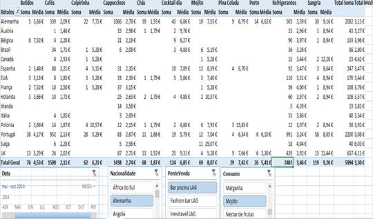 Não deixa igualmente de ser curioso que o Mojito, no Bar X, tenha obtido um número de pedidos equilibrado entre 4 países (Alemanha, Espanha, Portugal e Suíça) mas, no Bar Y, a percentagem é bastante desnivelada para o lado dos germânicos (47,92% do total).
