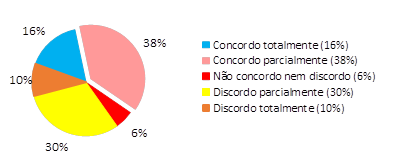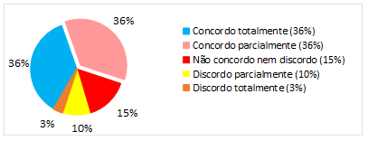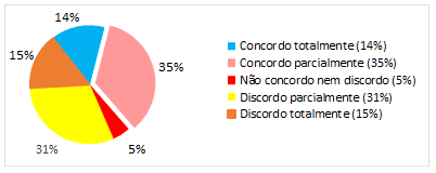 A partir de cada questão formulada, os respondentes puderam escolher seu grau de concordância ou discordância numa escala de valor que variou de cinco a um, de maneira que cinco é para “concordo totalmente” e um para “discordo totalmente”, além de uma opção neutra “não concordo nem discordo”.