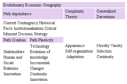 Strambach and Halkier (2013) points that evolutionary economic geography plays an important role in path plasticity, as the dynamic processes of regional development enhance the processes of innovation, and the importance of the integration among social actors, and take into consideration the regional development, besides knowledge, innovation, technology, and the economy itself.