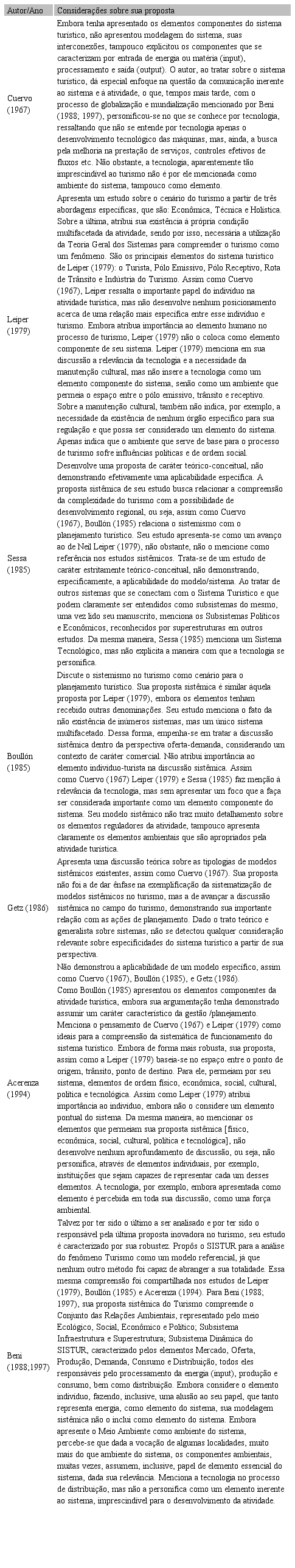 Algumas considerações levantadas na análise das obras clássicas da abordagem sistêmica aplicada ao turismo apresentam como resultado:
