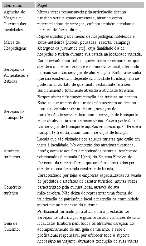 Não apenas a teia formada pela interconexão dos serviços é que lhe permite tal caracterização, mas ainda, o próprio resultados das relações entre aqueles que se dirigem à dada localidade turística e que, inevitavelmente, interagem com a comunidade receptiva.