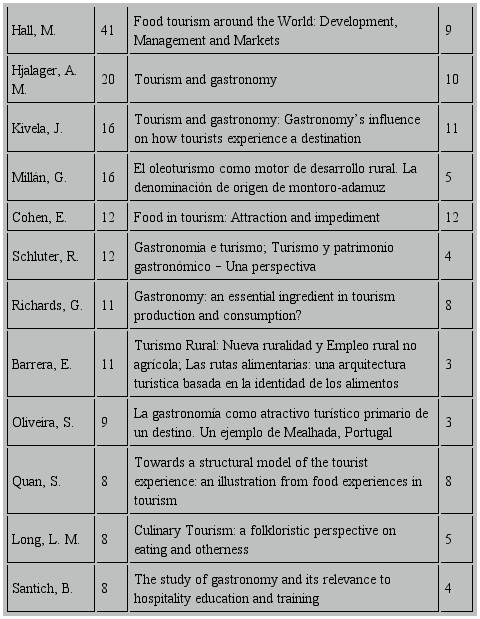 Esta informação torna-se importante na medida em que futuras pesquisas possuam como o direcionamento de quais são as pesquisas consideradas como sendo balizares na fundamentação na construção científica do turismo gastronômico.
