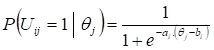 P(Uij = 1|θj): a probabilidade do avaliado j com qualidade em serviços θj atender o requisito/serviço questionado pelo item i (representado pelo valor igual a 1);