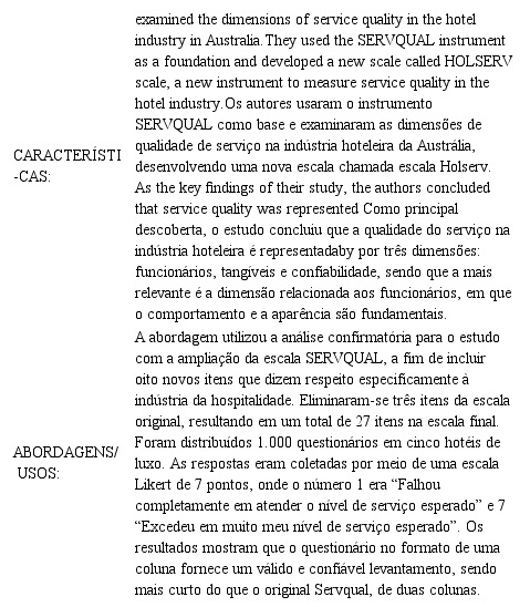 Desta forma, verifica-se uma promissora forma de analisar o serviço em hotéis devido à sua mensurabilidade, reduzindo aspectos subjetivos da avaliação, com escores precisos para comparar hotéis em caso de benchmarking.
