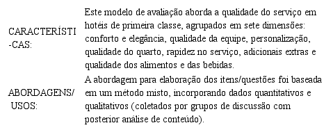 Serão apresentados a seguir, em ordem cronológica, alguns modelos de avaliação da qualidade em serviços de hotéis.