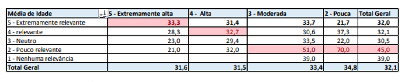 Na Figura 11, a média de idade dentro de cada grupo de inquiridos, tendo em consideração o cruzamento entre a relevância do smartphone e a importância dos comentários, verificou-se que vai aumentando a idade consoante vai diminuindo a influência da utilização dos comentários. O grupo dos que consideram “Extremamente relevante” a utilização do telemóvel apresenta uma média de idades à volta dos 30 anos, com exceção dos que atribuem pouca importância aos comentários, que pertencem a uma média de idade de 20 anos. Um dos motivos que pode estar relacionado com estes resultados é a geração a que estes turistas pertencem, pois os primeiros pertencem à geração dos millennials e os segundos à geração dos centennials.
