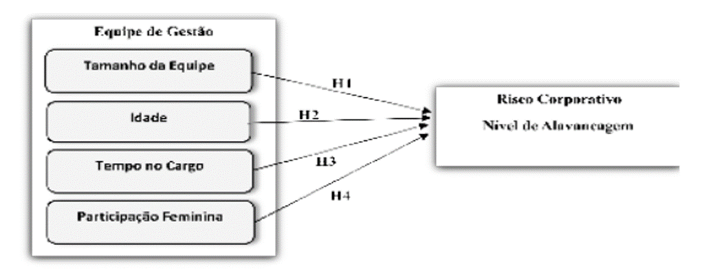 Tem ocorrido um debate na literatura acerca da influência das características dos CEO’s e a tomada de riscos corporativos (Farag & Mallin, 2016). A primeira característica a ser destacada é o tamanho da equipe de gestão, que corresponde à quantidade de gestores de topo (direção) da organização. Sherman, Kashlak e Joshi (1998) encontraram relação positiva entre tamanho da equipe e desempenho organizacional com o aumento do volume de atividades internacionais. A pesquisa de Cheng e Courtenay (2006) fornece evidências de que a composição do conselho de administração está positivamente associada com o nível de divulgação voluntária, além disto, pode afetar positivamente a quantidade e a qualidade da informação fornecida ao público (Chau & Gray, 2002). Já Alves, Couto e Francisco (2015) encontraram relação positiva entre o tamanho da equipe e o uso da dívida de longo prazo, ou seja, as empresas da pesquisa utilizam maior proporção de capital de terceiros, incorrendo em menor risco. Partindo do exposto, tem-se a seguinte hipótese em relação ao tamanho da equipe de gestão: