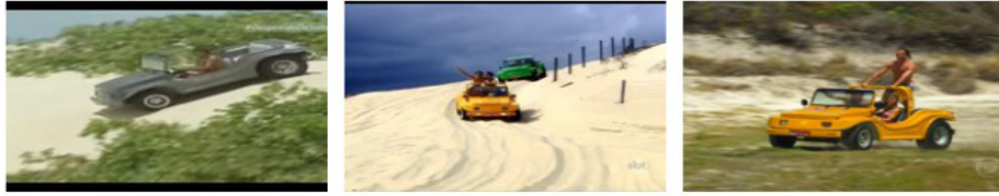 i) Iniciar aventuras(Imagem 13): na maioria das cenas, repetem-se os passeios “com emoção” em buggies pelas Dunas de Jenipabu. Esses passeios já fazem parte do imaginário sobre o RN, pois (como já mencionado) na maioria das telenovelas eles são realizados pelos personagens. Outras opções de atividades de aventuras são o mergulho em Maracajaú e o esquibunda, que atraem a atenção de alguns turistas que visitam o litoral do Rio Grande do Norte – e isso é expresso nas telenovelas mais recentes (Chiquititas). O imaginário de aventura mais uma vez se dá em um cenário litorâneo, com a presença de atividades em meio à natureza praieira.