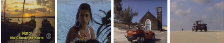 Cambalacho (1986 – Imagem 01): a telenovela divulga a cidade de Natal-RN no último capítulo por meio da personagem mais popular da trama - Tina Pepper, mostrando-a na piscina do Hotel Escola Barreira Roxa, localizado na Via Costeira de Natal. Em seguida, a personagem passeia de buggy, registrando a Igreja de Pedra da Praia da Redinha e os pescadores. Depois, a personagem surge nas Dunas de Jenipabu (primeira aparição de tráfego de buggy em telenovelas).