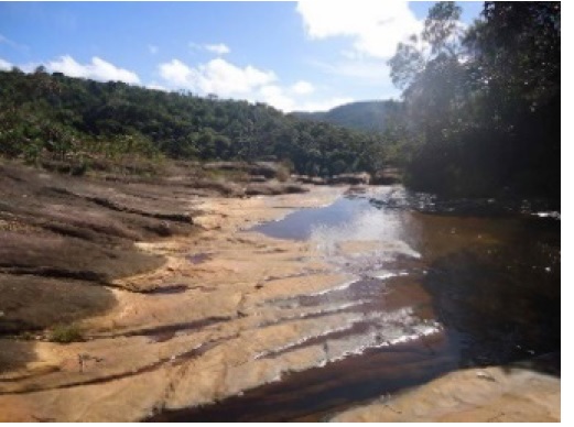 No mirante, localizado na parte superior da cachoeira Véu da Noiva (Figura 6) é possível que se realizem atividades científicas, pedagógicas e turísticas. Seu acesso é limitado considerando-se crianças, idosos e PcD, tornando a trilha difícil (ABNT, 2019). Entretanto, é uma boa opção de uma trilha não muito longa e nem tão difícil e com paisagem deslumbrante, além de banho em queda d’água, que antecede o atrativo. Também é possível chegar à parte superior do Véu da Noiva (Figura 9), percorrendo o mesmo córrego onde descem às quedas desta última cachoeira citada.