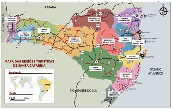 Keywords: Tourism Regionalization, Tourism Map, Governance, Categorization of Tourist Municipalities, Tourism in Brazil, Tourism in Santa Catarina.