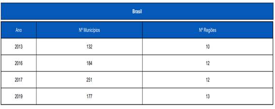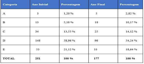 ● 377 municípios na Categoria E, dos municípios que não apresentaram índice em referência aos indicadores (Brasil, 2019a).