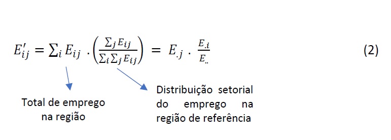 No presente artigo é utilizada a adaptação proposta por Esteban-Maquillas (1972), o qual utiliza o emprego homotético, que representa o quantitativo de emprego que uma região j teria se tivesse uma estrutura de produção e emprego idêntica a da região de referência. O emprego homético é definido por: