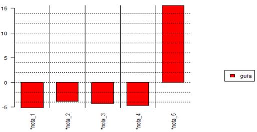 Como cada comentário no TripAdvisor é acompanhado de uma nota atribuída pelo usuário ao atrativo (escala Likert de 1 a 5), a análise de especificidades consegue definir qual vocábulo é mais representativo em cada nota. Por exemplo, ‘guia’ (figura 2) é o termo específico mais preponderante nas avaliações de nota 5. Esta afirmação indica que esses profissionais são os principais motivadores das opiniões de valor máximo. Este recorte de um comentário nota 5 ilustra tal aspecto: “O quadriciclo é super maneiro, a trilha muito boa, recebemos todas as instruções antes de começar e os guias sempre muito atenciosos e cuidadosos”. O comentário em questão também revela importância dada em Bonito/MS ao turismo de natureza, segmento específico de turismo com foco na integração do visitante com o meio ambiente humano e natural, através da recreação, lazer, da interpretação da natureza em diferentes níveis, através dos guias, com a prática de esportes em diferentes intensidades físicas e de risco, especificamente realizadas no ambiente natural (Ivona & López, 2019).