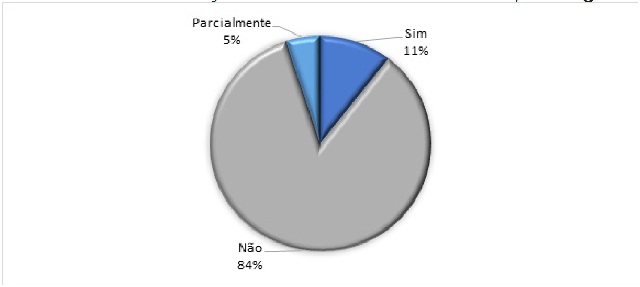 Os resultados demonstraram que 100% dos entrevistados afirmaram ter investido em EPIs. O estudo de Félix, Reinoso e Vera (2020) confirmou o emprego de boas práticas de higienização nos estabelecimentos turísticos de Manta, município do Equador. Além disso, os gestores também consideraram a necessidade de treinamento com os funcionários – total (47%) ou parcialmente (53%) (Gráfico 6). Fato este que corrobora com a pesquisa de Salem, Elkhwesky e Ramkissoon (2021), a qual relata que todos os hotéis entrevistados realizaram algum tipo de treinamento de funcionários sobre novos padrões de limpeza e higienização.