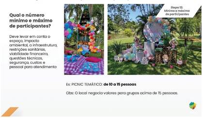 Sobre a terceira e última reunião da fase ‘Criar’, a equipe analisou junto aos agricultores os aspectos referentes à divulgação e comercialização das ETM, como o número mínimo e máximo de participantes, conforme a Figura 7.